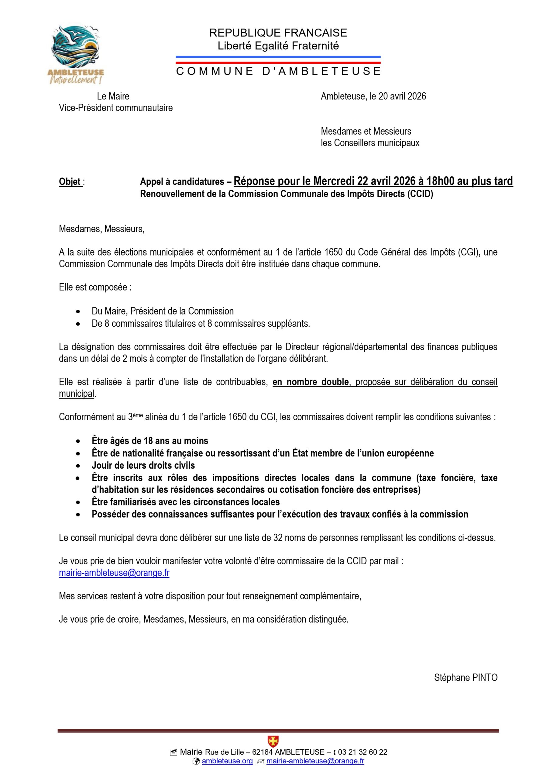 📢 APPEL À CANDIDATURES : Commission Communale des Impôts Directs (CCID)
