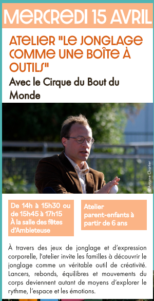 Rendez vous Mercredi 15 avril à la salle des fêtes d’Ambleteuse pour un super atelier : « Le jonglage comme une boîte à outils » ! 🎪