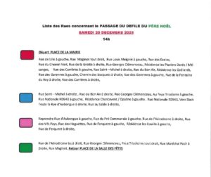 1️⃣ 14h00 : DÉFILÉ DU PÈRE NOËL 🛷 Le cortège partira de la Place de la Mairie. Vous trouverez ci-dessous l’itinéraire détaillé pour voir passer le Père Noël près de chez vous.