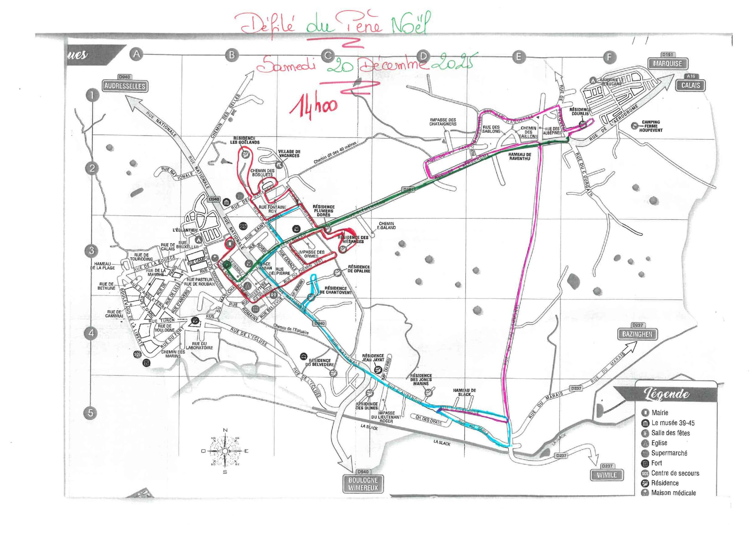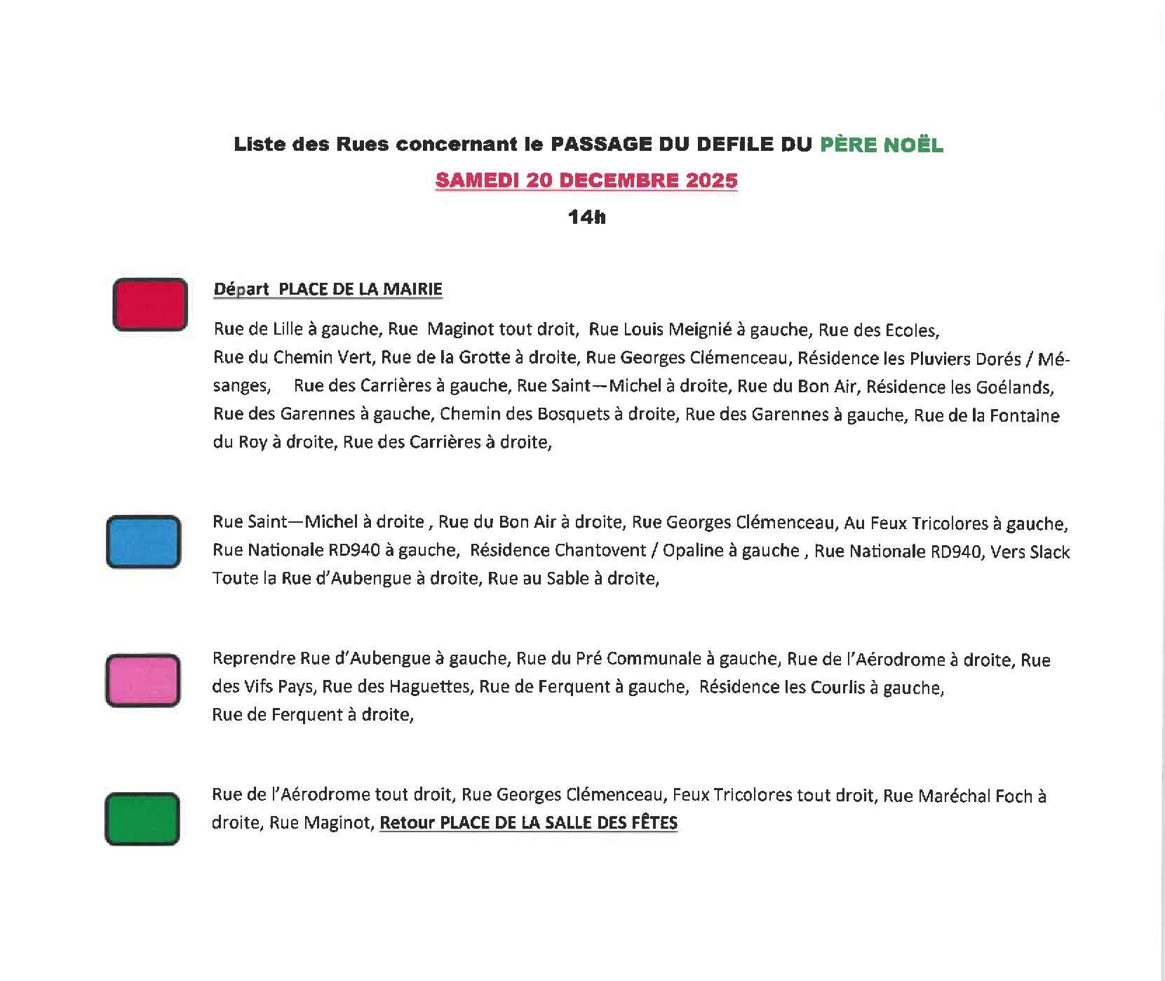 1️⃣ 14h00 : DÉFILÉ DU PÈRE NOËL 🛷 Le cortège partira de la Place de la Mairie. Vous trouverez ci-dessous l’itinéraire détaillé pour voir passer le Père Noël près de chez vous.