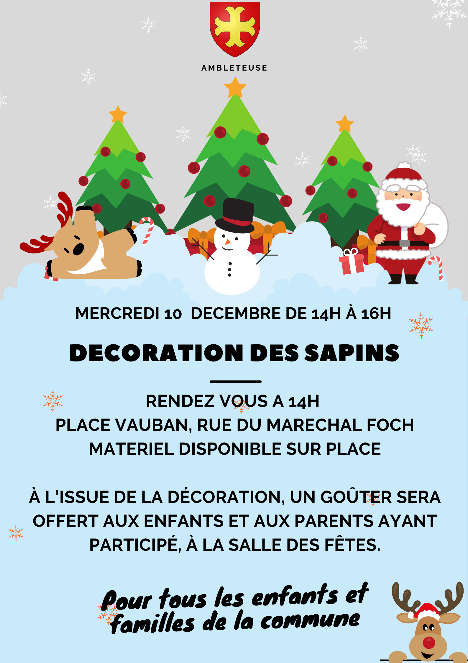 Au vu des conditions météorologiques prévues ce samedi 6 décembre, la décoration des sapins, initialement programmée à 15h, est reportée.