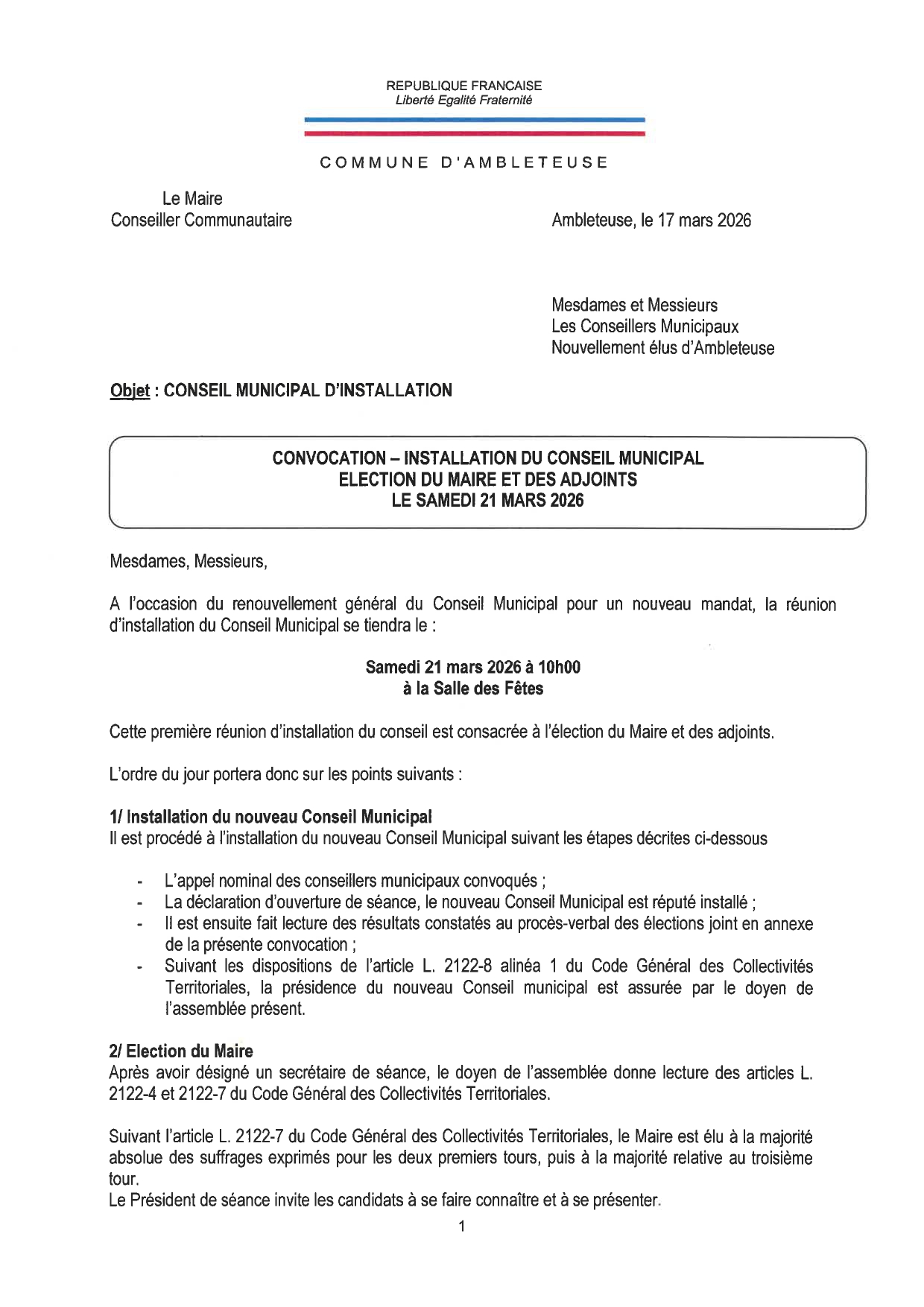 Installation du Conseil Municipal d’Ambleteuse et Élection du Maire – 21 mars 2026